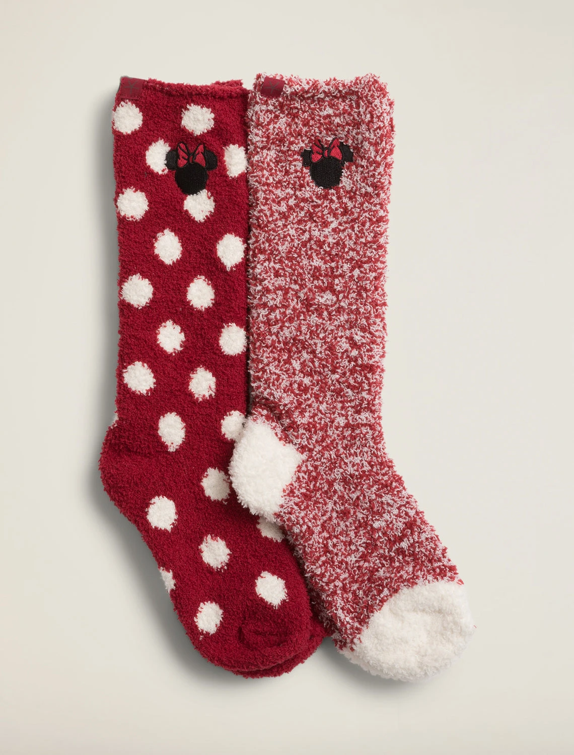 Double the fun! Keep your toes warm and cozy with a set of our ultra-soft CozyChic socks featuring an embroidered Disney Minnie Mouse in playful polka dots and festive heathering.