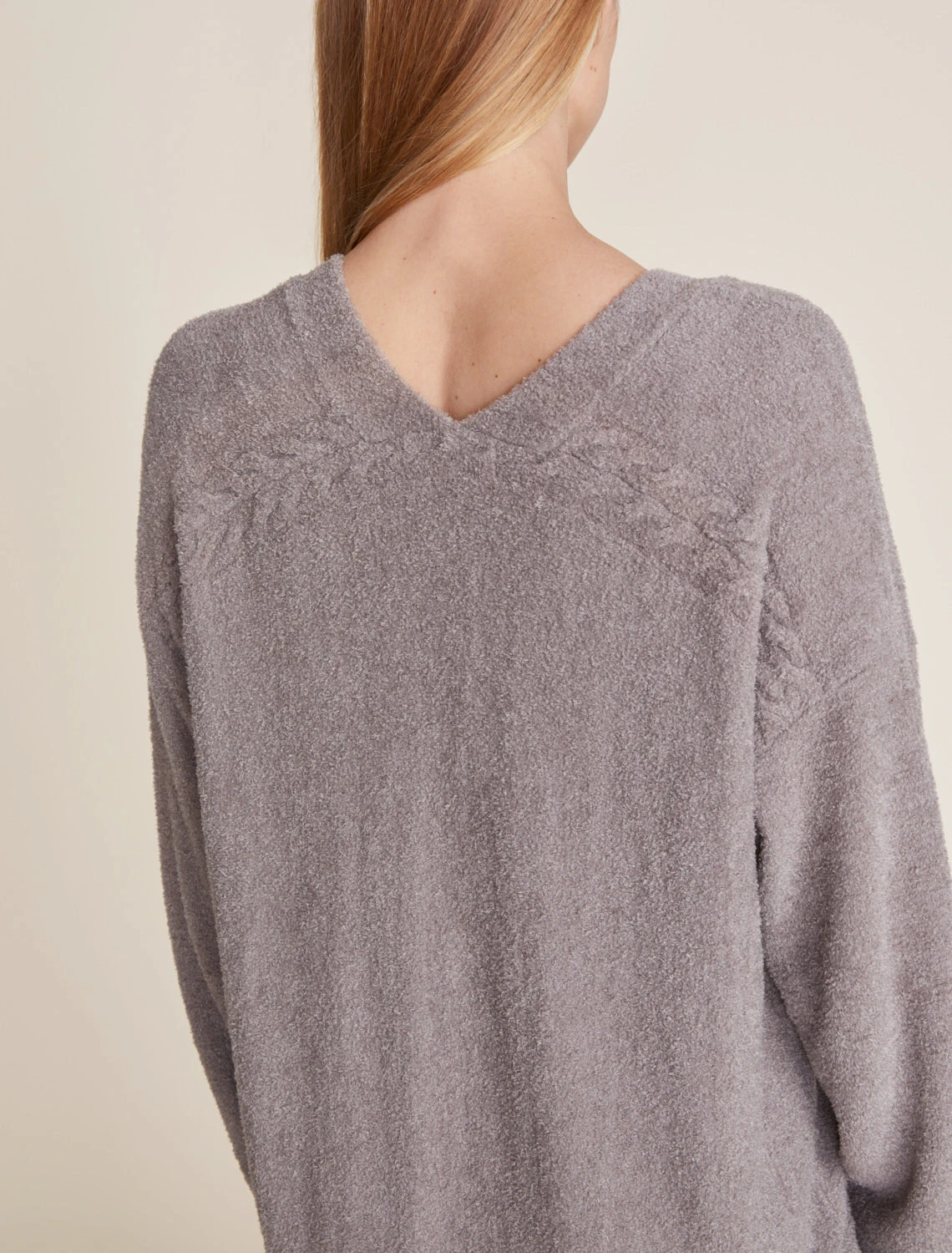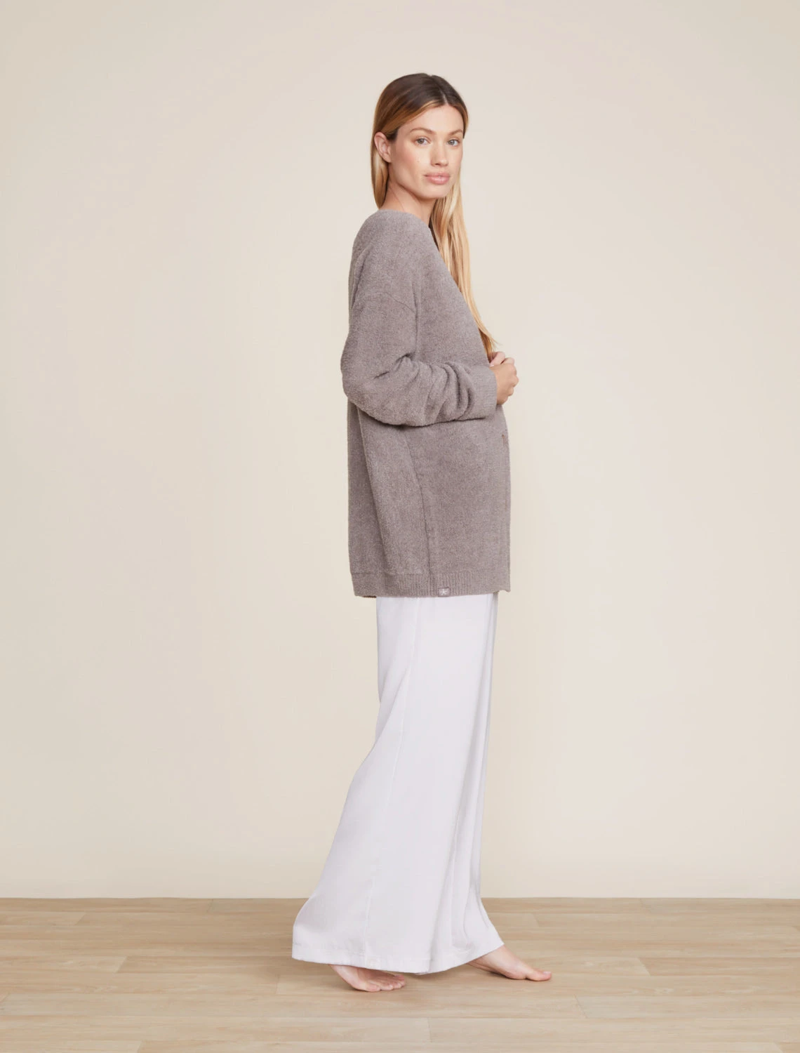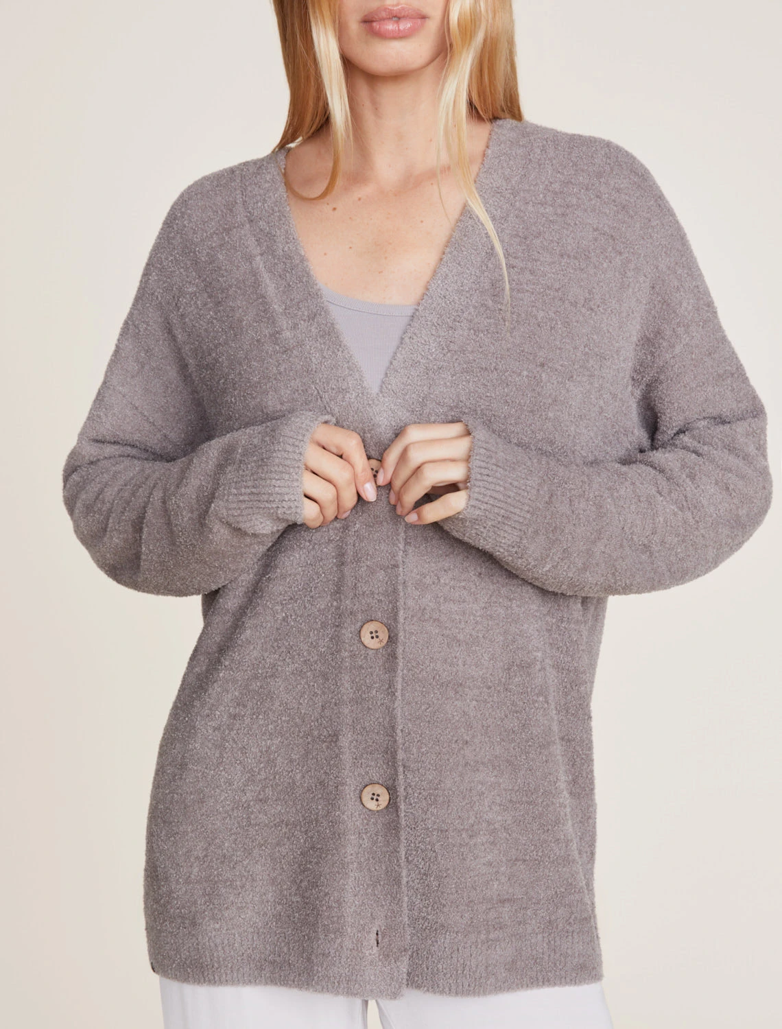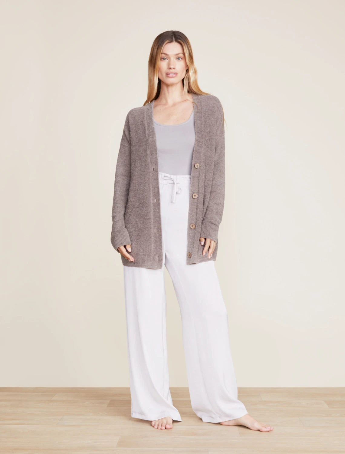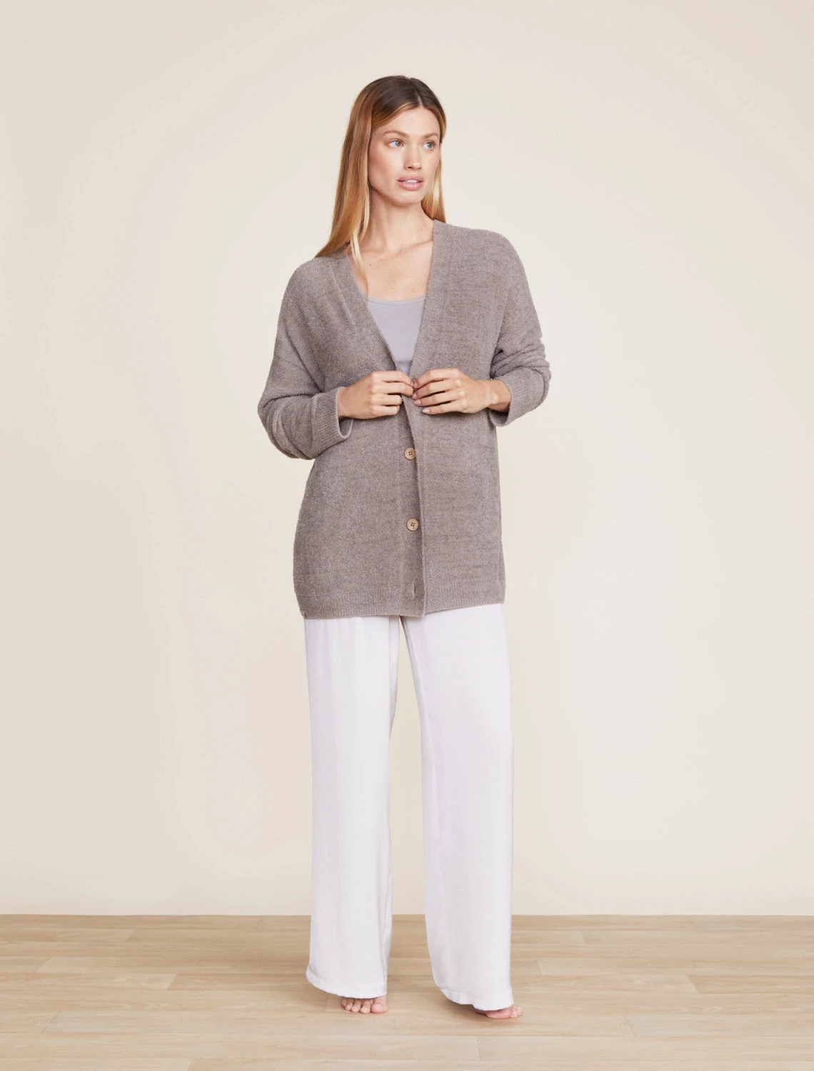 From our Day to Night Collection ™, this classic button-front cardigan has unique detailing. It features a v-shaped back neck design and fine rib placket with more defined rib at the sleeve and bottom openings. The back yoke seam has a stylish cable stitch detail, with a relaxed fit and drop shoulder for comfort. Signature coconut buttons complete the look with an elegant starfish engravement. Model is 5′ 7″ and is wearing a size XS.