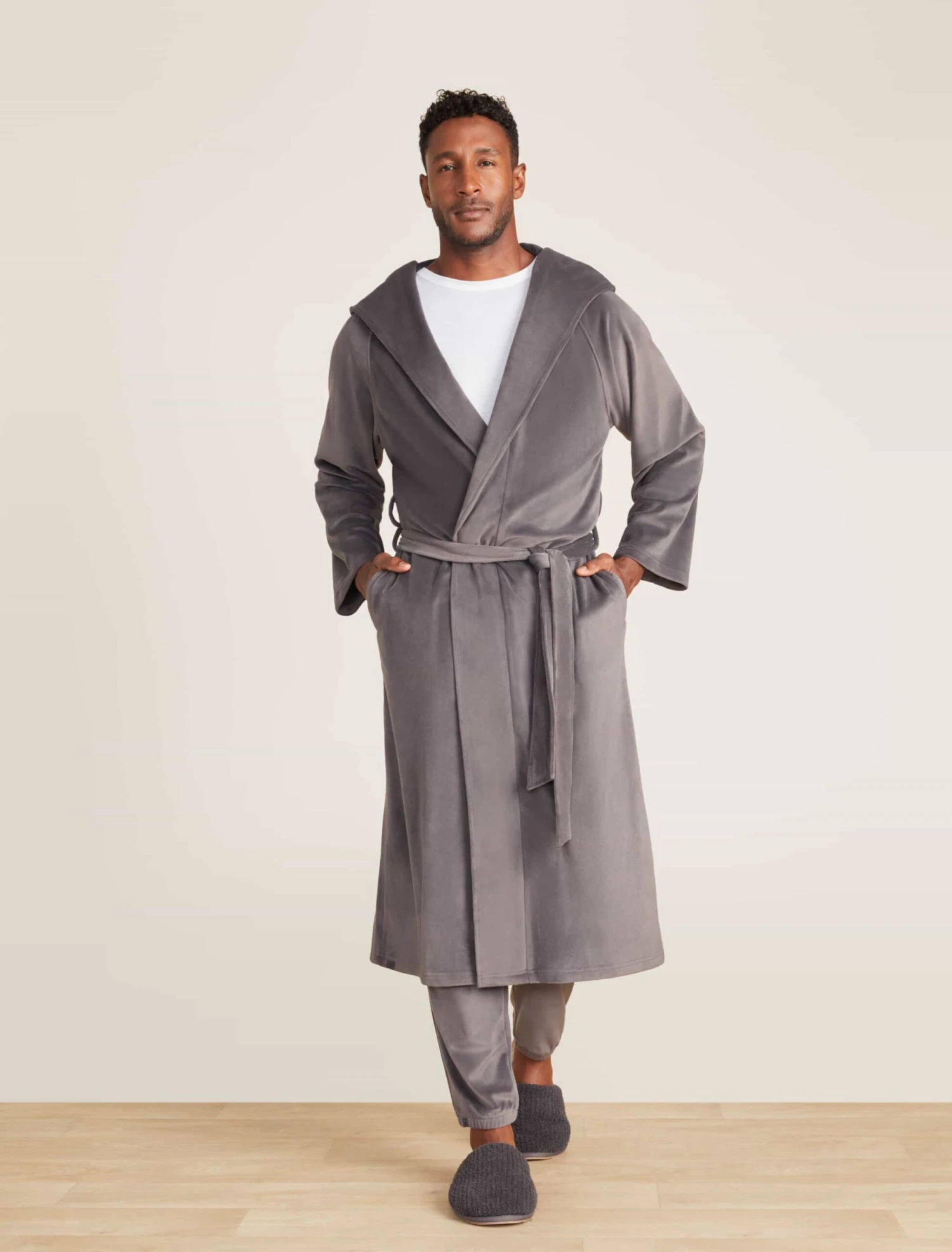 Designed for ultimate comfort and convenience, this long length unisex design features side welt pocket detail and a tie at the waist for a secure, adjustable fit. Crafted from ultra soft materials, this robe provides the ultimate in comfort and luxury. Model is 6′ 2″ and is wearing a Size 2.