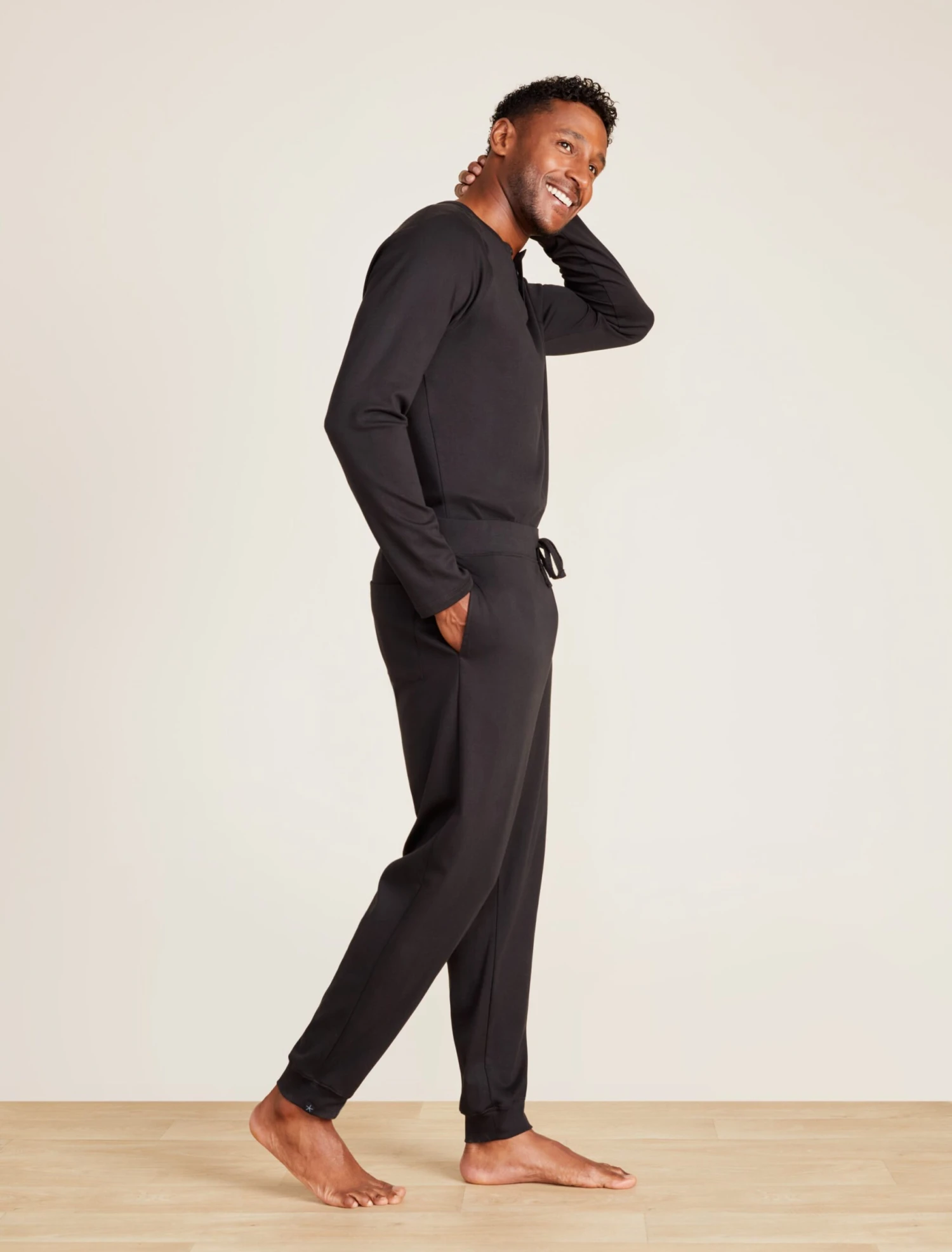Stay comfortable and stylish with the Malibu Collection® Pima Jersey Jogger. Crafted from luxuriously soft Pima cotton, these jogger-style pants feature an elasticated waistband with drawcord and inseam pockets. Model is 6’2″ and wearing a size L.
