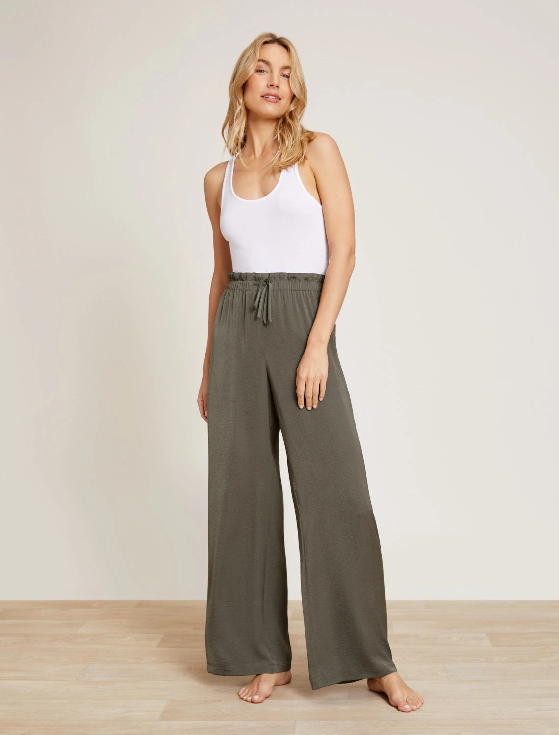 From our Day to Night Collection ™, these stylish pants are comfortable for sleep or chic for everyday wear. A long wide-leg silhouette creates a flattering shape, while paperbag waist detail features an adjustable drawcord and soft elastic for all day, or all night, comfort. Features two in-seam pockets. Model is 5’8″ and wearing a size S.